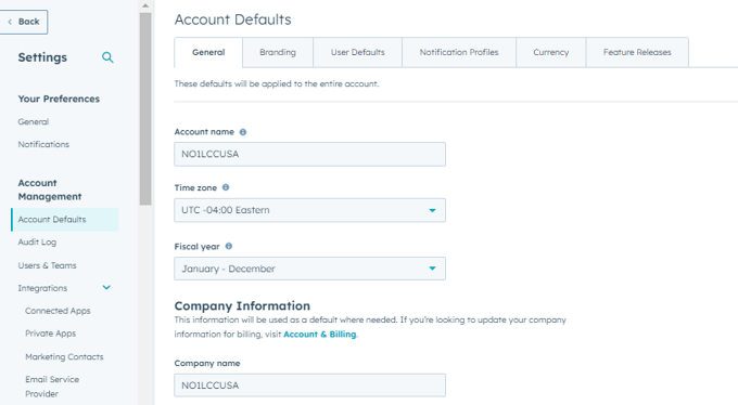 Account Default and Localization Settings: Start onboarding by setting up account default settings like name, company name, etc. Also set up language, currency, and region settings properly that align with your business needs.